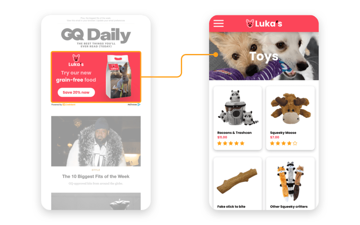 You excitedly click the ad to learn more, but instead of landing on a page with a coupon code, you land on the toy section of their website. Yikes.