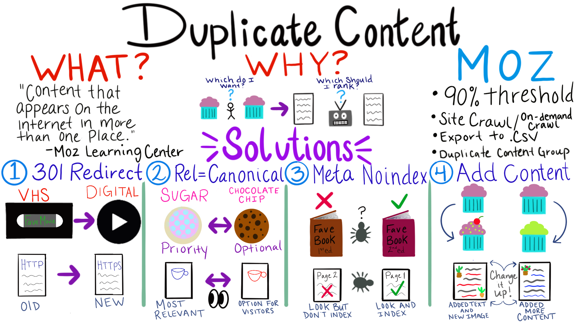 In this week’s episode of Whiteboard Friday, Moz Learn Team specialist, Meghan, walks through some handy (and hunger-inducing) analogies to help you answer these questions!