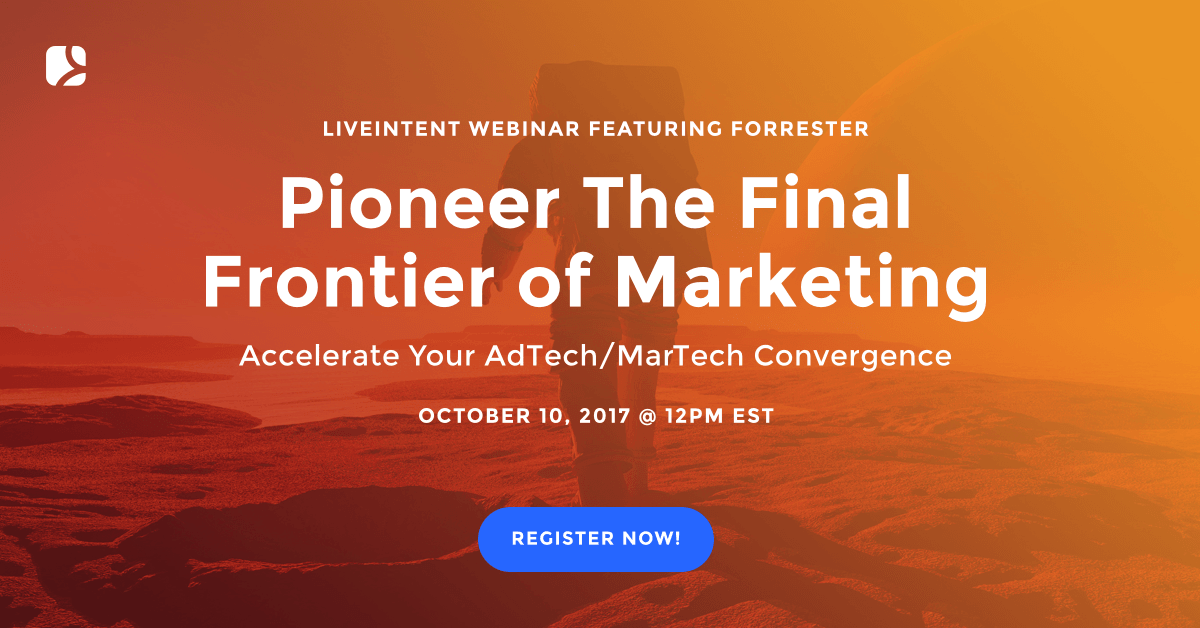 Join us for the webinar, “Pioneer The Final Frontier of Marketing“ with our guests, Joe Stanhope, VP, Principal Analyst at Forrester and leading expert on the intersection of marketing and technology and digital marketing expert, Jess Jacobs, Director of Marketing at Wayfair. Register Now!